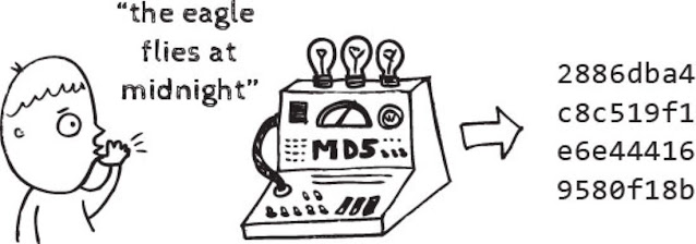 Hashing is a one-way function that transforms the input to produce a unique message digest. A good hashing algorithm is irreversible, and therefore it is impossible to retrieve the original input text. Securely storing passwords involves applying the hashing algorithm to them. One might wonder, how does password verification during authentication work then? The answer is simple and comparing the hashed value for two passwords is the appropriate solution. Let's see this with the help of an example: